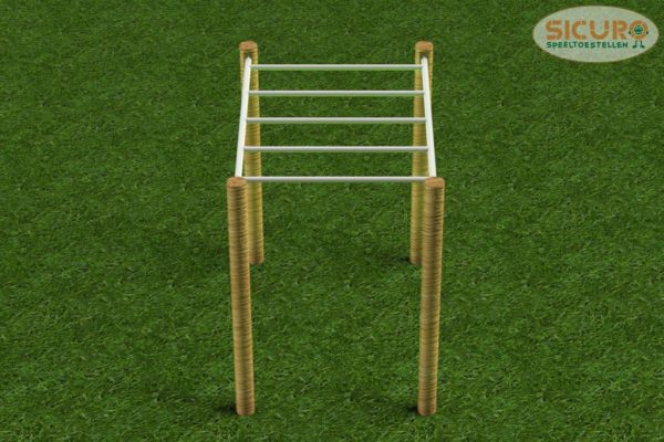 Horizontale ladder, zeer geschikt voor het trainen van de behendigheid. Daarnaast ook zeer goed voor het trainen van het gehele lichaam. Zoals alle andere toestellen zeer goed te combineren tot een uitdagend gevarieerd combinatietoestel.